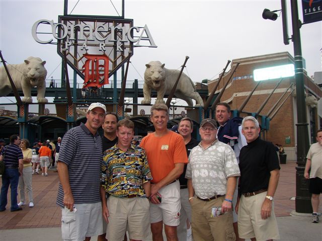 Greetings to all as we move toward Labor Day and the home stretch of the 2008 baseball season. This version of the Jiggernaut will serve to fulfill my annual obligation as scribe for the league trip, and what a junket it was. Eight brave members of the Nebraska Hot Stove League set aside the weekend of August 24, 2007 to make the pilgrimage to Detroit and the still shining jewel that is Comerica Park. The trip ended up being a historically significant one, not only from the events that happened on the field, but those that transpired within the rickety walls of Detroit’s drinkery’s and grub stops. Read on for the specific details that can be shared beyond “what happens in Detroit stays in Detroit”.