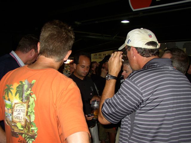 With Big Guy having already secured quality ducats for the evening, we made a beeline for the stadium, initially oblivious to the street people hawking their chits for the game. That was before we met Tee, he of the famous Tee’s Tickets and Deep Sea Fishing Excursions. You see, Tee had a deal for us. At least that’s what a certain gray haired Yankee fan among us concluded. Given that the games were sold out for both nights, Tee informed us that he was the only brother in town that possessed 8 tickets together for the Saturday night game (“It ain’t happenin no where else m’ man, trust me on that”). Larry Tate has nothing on Tee. In fact, I suspect Tee may have been involved in the original trinkets and beads transaction in Manhattan. For the reasonable price of $40 per ticket, Tee told us the tickets could be ours. “Third base line, I’m not really sure where” was Tee’s explanation of the accommodations. “Better hurry, though, cause like I said, you ain’t gonna find no 8 together nowhere else. I aksed around.” After a cursory examination of the documents to ensure that they were indeed legitimate and for the 8/24 game against the Yankees this year, Hoodwink #2 for the evening was well underway. We completed the transaction, each gladly coughing up the 40 bones in order to sit with our brethren and avoid getting shut out on Saturday. Life is good, we’re all set for the weekend now, let’s get in the stadium.