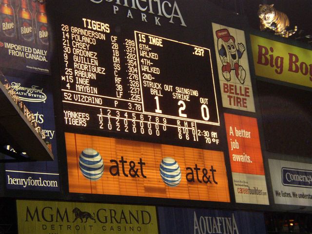 As we entered the stadium at 6:00, we got the opportunity to tour the grounds as the Yanks were finishing up batting practice. With only an hour until game time, we swiftly viewed the anatomically correct sculptures of Hank Greenberg, Al Kaline, Ty Cobb, Barbaro Garbay, and other Tiger legends. Oh wait, that last one is only in Sparky Anderson’s basement.