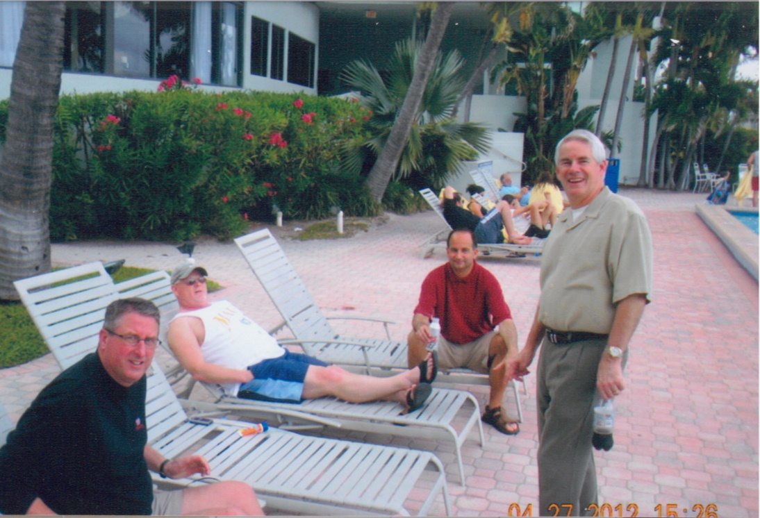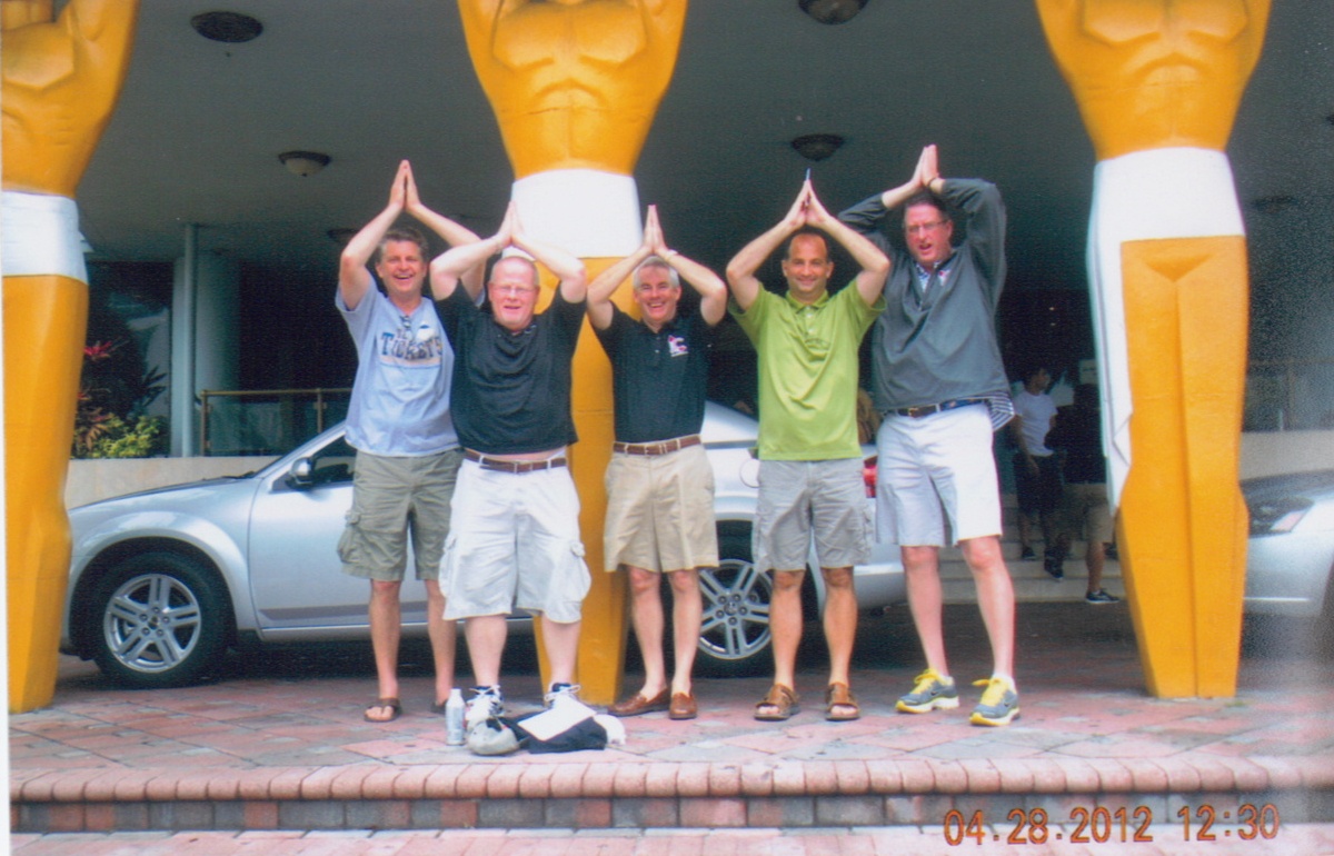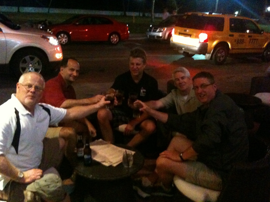 Throughout the course of the evening, we also added “Water Moccasins” to our repertoire of shots, which will serve us well for future trips. Eric suggested that we try them, and Shamu concurred that it was a great idea, letting Eric know that he wished he had thought of that. After polishing off the Mocs and deciding to call it a night, we headed back to the new Casablanca for a nightcap. We shared a few beers poolside and as words began to slur and past athletic achievements began to grow more impressive, we felt it might be time to retire for the evening. Just then, a little Cat and Mouse game broke out between Stretch and Shamu. The end goal was positioning to be the first one to sleep. As roomies, each was faced with a no win dilemma; Shamu facing the legendary noises emanating from Stretch’s sleep apnea, and Stretch facing the “piercing cough” that has been labeled by Jan Sinclair as the worst noise in West Des Moines. Even though their competitive nocturnal symphony was taking place on the fourth floor, the noise was so bad that Skipper and I requested that our room on the tenth floor be moved next to the ice machine and adjacent to the elevator to drown out the noise wafting up from six levels below. A wise move indeed.