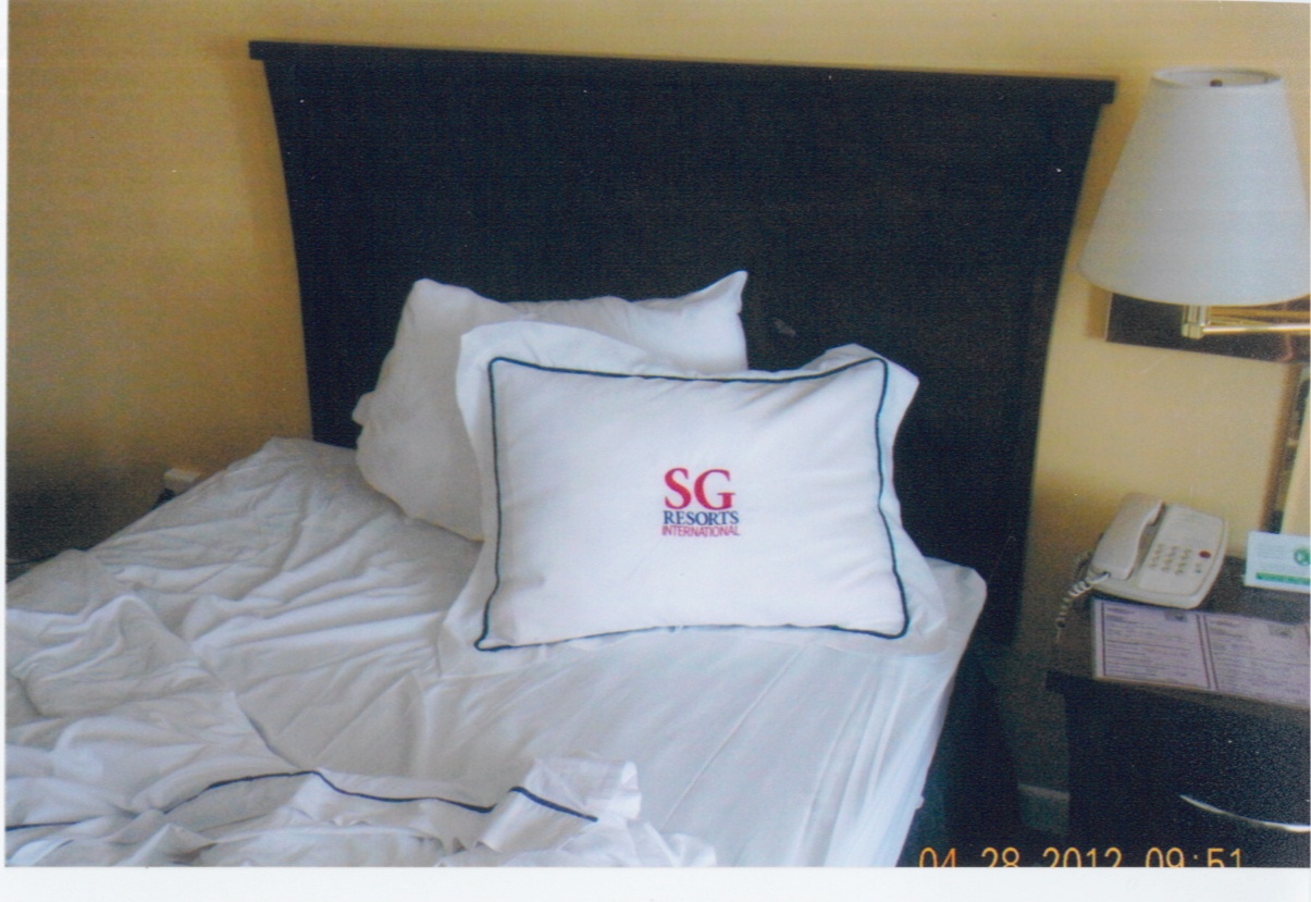 We checked in, despite the fact that we speak a foreign language that was not understood by the staff personnel, and secured our room keys. We made our way to our rooms on floor ten, even though the hotel is only 7 stories high. Lo and behold, the new Casablanca has all the amenities you would expect…..tepid water for showers, plastic cups, a lobby business center (well, really a desk) with a dial up computer and a capacity of one user, and non plush, non absorbent, non supima bath towels that have failed to have the skid marks left by the previous guests extricated by the quick rinse cycle that is part of their new “green” policy for laundering linens. The bathroom size was rivaled only by the hotel in Cooperstown. And did I mention it is an oceanfront property? Our view of the ocean was only slightly obstructed by the more glorious view of the hotel boiler, air conditioning units, and four dumpsters. But hey, Mr. Optimism is gonna keep the bubbles and sunshine flowing here.