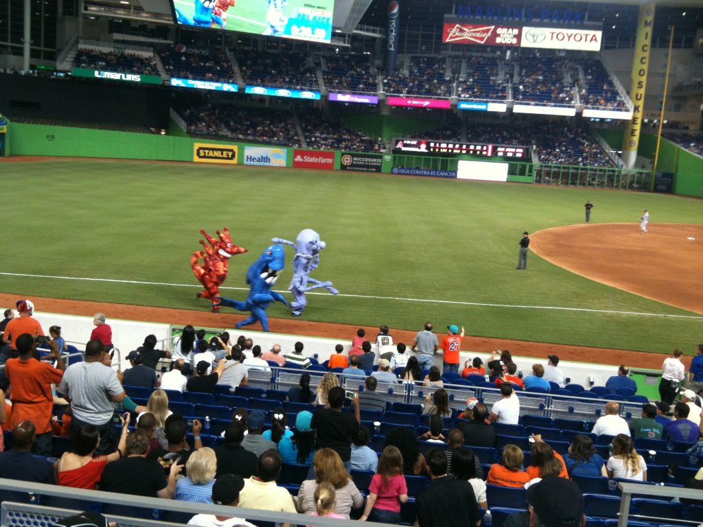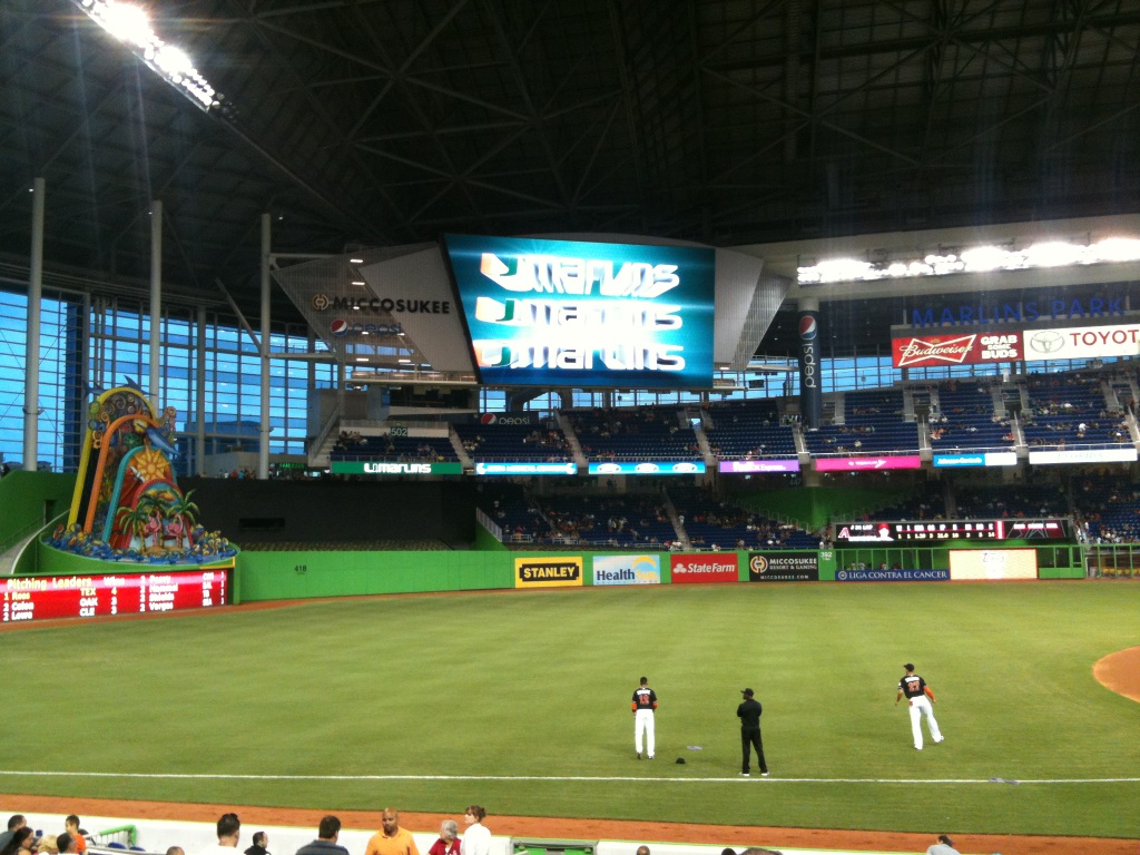 Given that time was tight (like Shamu’s Speedo) and time for the first pitch was approaching, we decided to grab a cab and head for the big potato chip that is Marlins Park.