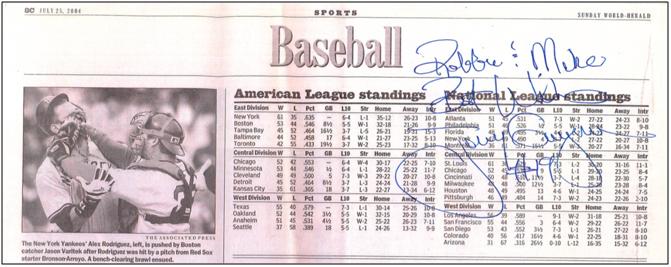 Anywho, Tony asks what is taking me to the garden spot of the desert. After a brief explanation (yes, Dave, it was brief!), I told Tony that the HSL had seen him get his 2000th hit in San Diego. He was truly amused to hear about the HSL and our tradition of baseball trips. After he asked me a couple of questions about Omaha and the HSL, I asked him if he would give me an autograph for my sons.