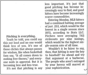 · Ted is right. Possum’s mantra about hitting was legitimized by the WSJ 5/28/13:
