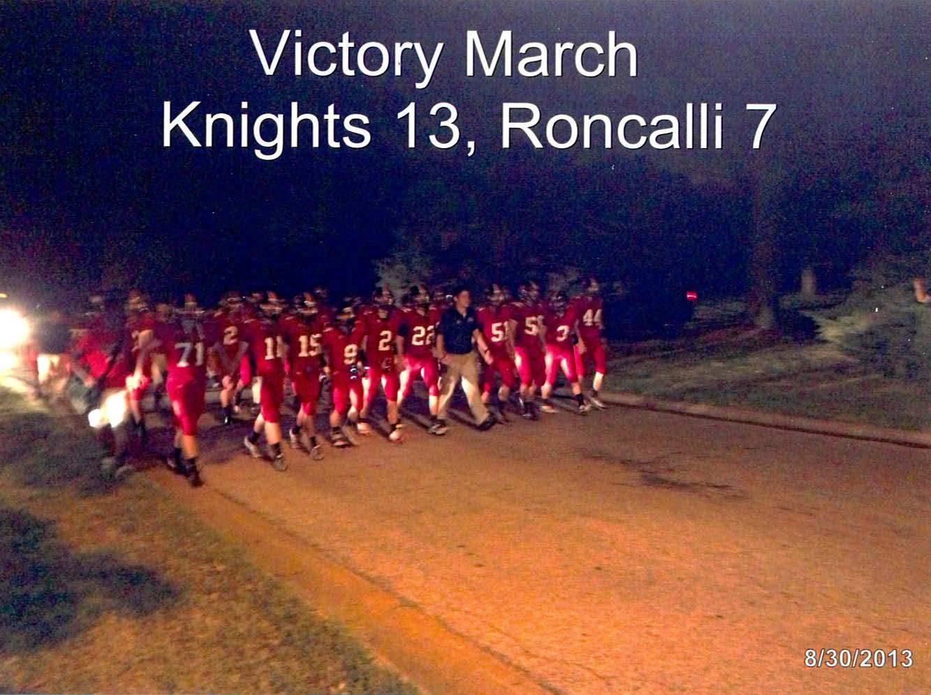 Below is a picture of the post-game victory march, with young Will in his No. 50 uniform walking side-by-side with Coach Borer. What a night!