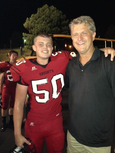 after a steamy night on the home field against hated rival Roncalli, young Will played every play, offense and defense, in the Knights’ opening game 13-7 victory over the Crimson Pride, the Knights’ first winning record (1-0) in football for more than a decade. Although Will was credited with 20 tackles in the Omaha World Herald standings a couple of days later, in truth more than a few of those may have belonged to the Knights’ middle guard, Andy Ernst, no relation to Will. Be that as it may, one of the tackles that Will absolutely gets credit for was a quarterback sack on a critical third down play on the Knights’ 17 yard line as Roncalli was driving for a go-ahead score with less than a minute to go in the game. This forced Roncalli into a 4th and long, and their desperation pass into the end zone was incomplete.