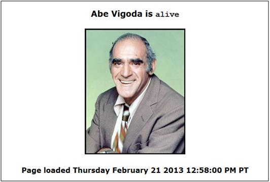I’m not sure that this will matter to anyone else, but if you can believe it, TV actor Abe Vigoda (Fish on Barney Miller) is still alive. I know. He seemed like he was 95 years old when he was on Barney Miller twenty years ago. However, according to my recent visit to his death watch website, AbeVigoda.com, Abe will turn 92 years old on February 24, this upcoming Sunday. So there you go. Happy Birthday, Abe!