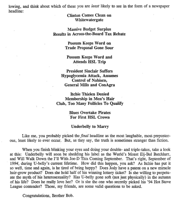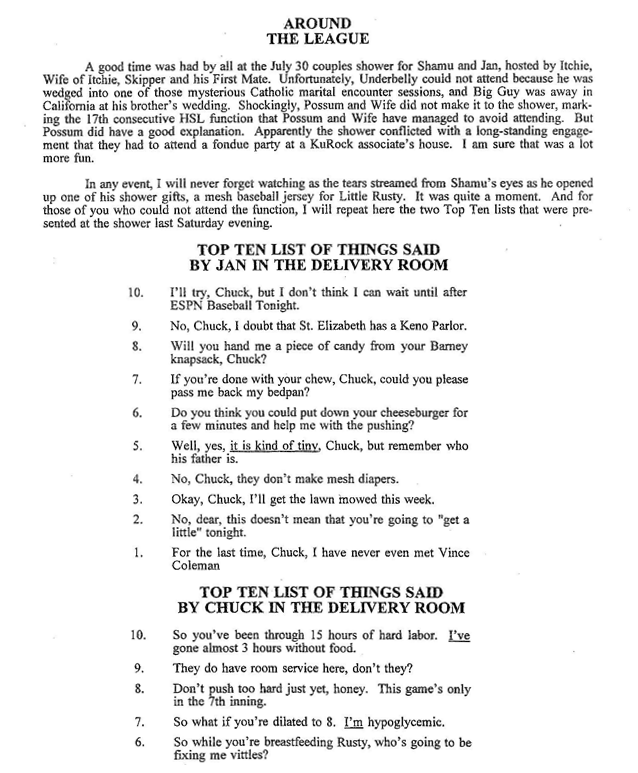 Never one to shirk his journalistic duties, Skipper took dutiful note of a few of our marriages and the birth of HSL offspring.