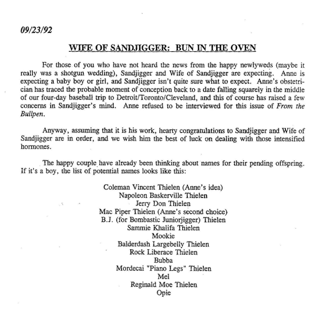 Speaking of college days gone by, it was very fun to see our lives come full circle as we note the Ernst, Thielen and Bridges’ graduation parties that occurred this year. The HSL was founded by mostly wife-less and/or child-less guys. In our brief 30 years of existence, we have seen the “less” disappear. Thankfully, we have an HSL record of this transition.