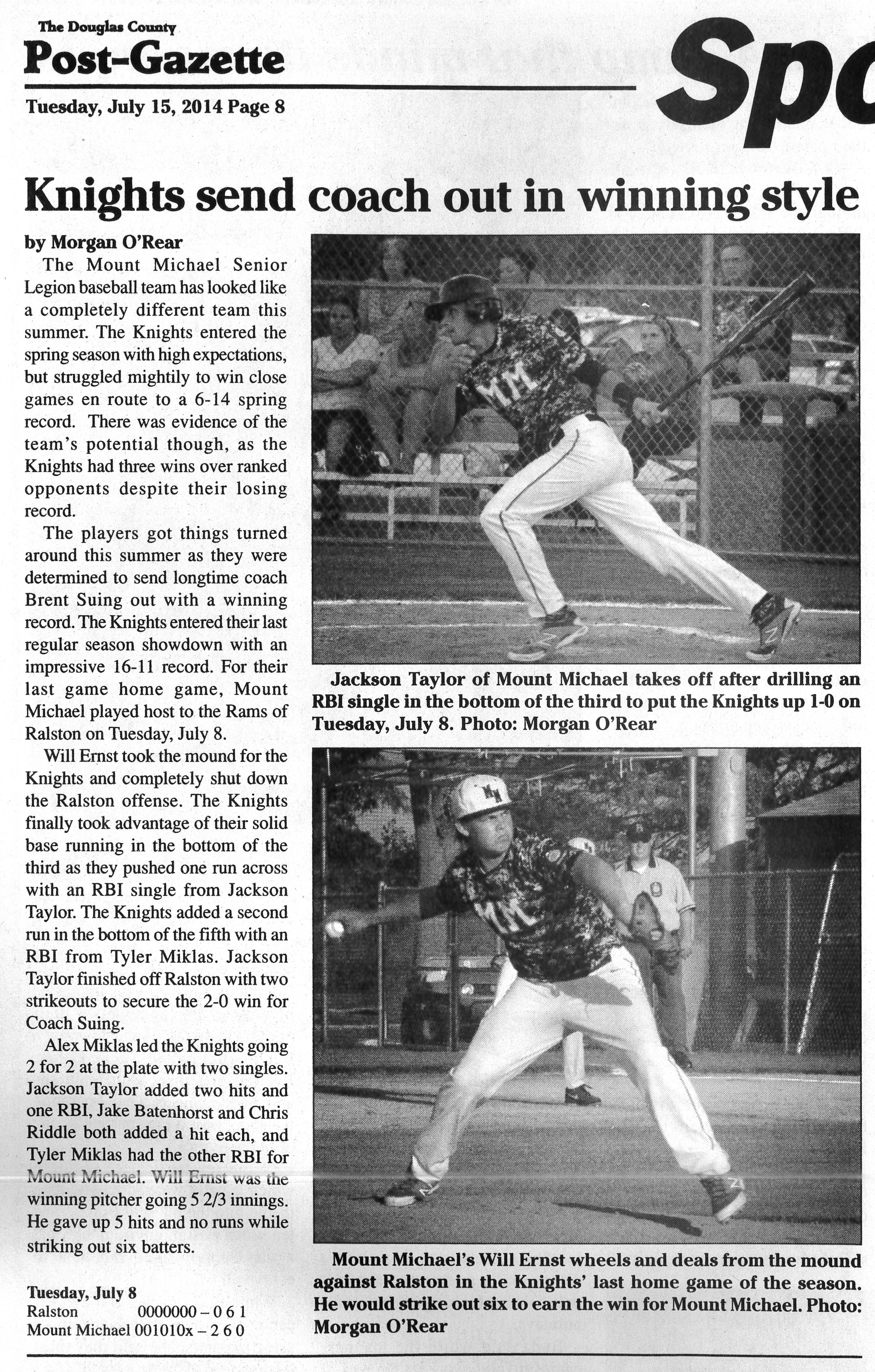 himself and called the runner at 3rd safe. Mount Michael Coach Suing then