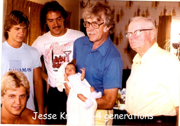 JESSE KRAUSE: 35 YEARS OLD So when I was going through some family pictures recently, trying to find some old photographs for Savannah’s upcoming graduation party, I came across this old family classic depicting four generations of males, including my Grandpa Leo Grittman, my father Jack, Scott, his prematurely-born newborn son Jesse, my brother Dan, and myself.