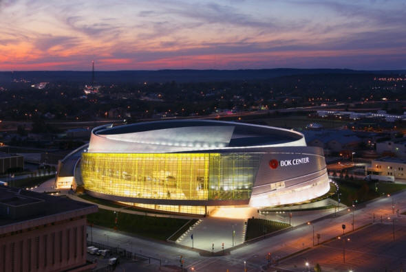 I think I have been to Tulsa once before, for a deposition many years ago, but I could be thinking of Oklahoma City, where I have been several different times for depositions. In any event, I was thoroughly impressed with the downtown Tulsa area, which is clean and modern and seemingly safe. Although I guess I could look it up, it appears that most of their major downtown skyscrapers were built in the art deco style of the 1920s and ’30s and are still remarkable and beautiful structures. In recent times, they have added some beautiful and architecturally innovative new buildings, including the BOK Center, shown below.