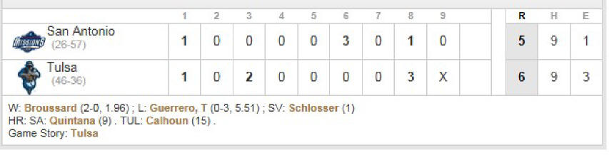 I saw a whale of a game on the field, with the Drillers taking the early lead by the score of 3-1, the Missions going out in front in the top of the 6th on a 3-run blast from Gabriel Quintana, and the Drillers reclaiming the lead in the bottom of the 8th and then holding on to win by the score of 6-5.