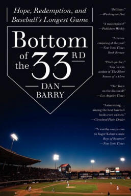 As I mentioned last issue, I have been reading and just recently finished a marvelous baseball book entitled Bottom of the 33rd, written by a non-baseball writer by the name of Dan Barry (he has a column with the New York Times) and published by Harper in 2011. Although I picked up this book in an airport book store in January on a lark--having visited McCoy Stadium in Pawtucket a couple of years ago on a deposition trip, where I read a bit about the historic 33-inning game at a display at the park--I will go out on a limb and say that this is one of the best baseball books I have ever read. And since 90% of the books that I read are baseball books, I guess that also means it is one of the best books of any kind that I have read.