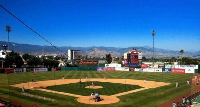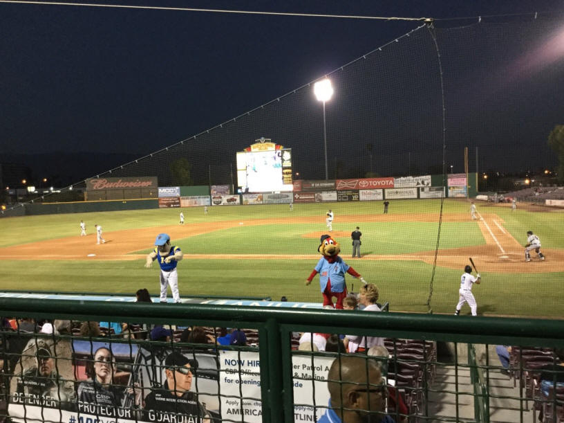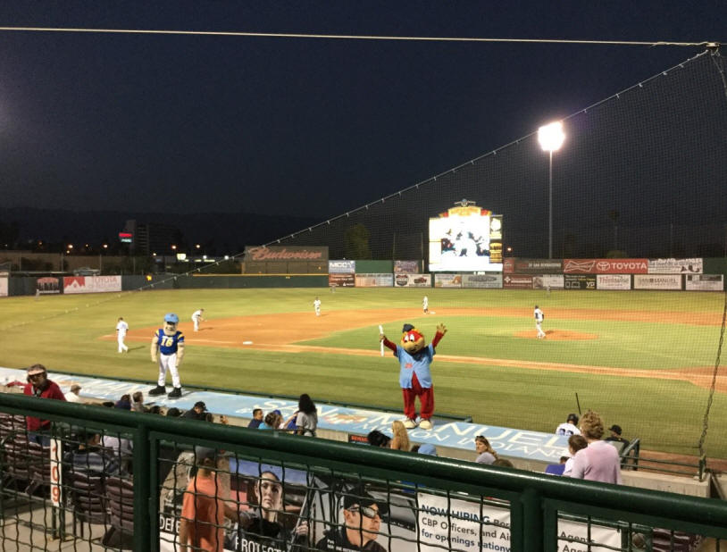 Earlier this month I was able to negotiate a visit to San Bernardino--which recently won the ignominious distinction of being named the Golden State’s most dangerous city--at the back end of a deposition trip, which meant an opportunity to take in a California League baseball game between the Inland Empire 66ers (at the west end of Route 66), a farm club of the Los Angeles Angels, and the visiting Lancaster JetHawks at San Manuel Stadium. It was a beautiful evening for a ballgame, and while the ballpark formerly known as Arrowhead Credit Union Park is a bit shopworn and does not have all the amenities of some of the more recently-constructed minor league ballparks, the backdrop of the beautiful San Bernardino mountain range alone makes it worthy of a visit.