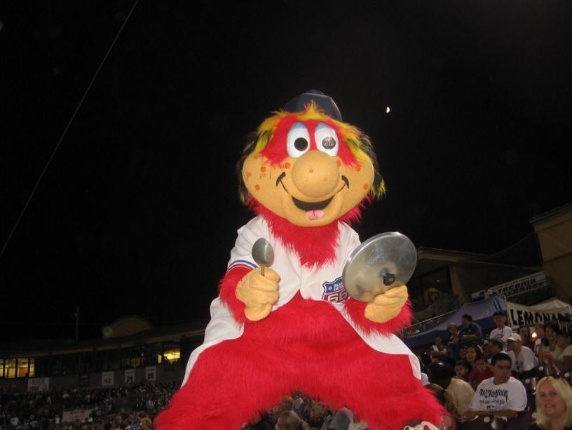However, as I watched in amazement as Bernie entertained the simple, blue-collar crowd with his vast array of gags and shticks, I realized that I was watching a master at work. Playing the frenzied crowd like a virtuoso plays a Stradivarius, Bernie exhibited the deft touch and precision timing of a chainsaw juggler, knowing exactly how many times to strike the metal cooking pot lid with his soup spoon while scampering across the top of the visitors’ dugout, and just when to pull back after faking a stroke of his spoon while eliciting oohs and aahs and a chorus of cheers from the putty-in-his-hands throng. From his classic fake stickup of a burly security guard to his naughty Dirty Dancing encounter with a chesty young Hispanic siren, Bernie kept the crowd at a fever pitch for nine strong innings, and, unless I miss my guess, is clearly destined for greater things. I’m not sure if the Philly Phanatic or the San Diego Chicken are looking for a replacement anytime soon, but my money is on Bernie to be wowing the crowds at a major league level before he dons his last sweaty, stinky mascot costume.