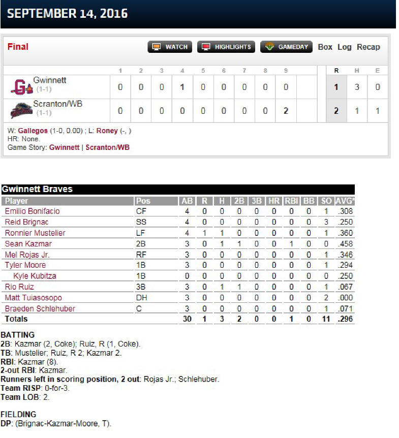 As I watched this game and looked up the backgrounds and statistics on each player, I realized that most of them are not up-and-coming studs who will one day be major league all-stars, nor are they major league has-beens. Most are career minor leaguers who might make it up to the Show for a cup of coffee or two, but are not likely to stick around for long. The future studs of the game and the players with substantial major league experience have already been called up to fill out the 40-man rosters, and so the players on the field, while playing for the International League championship, are in reality not playing for much more.