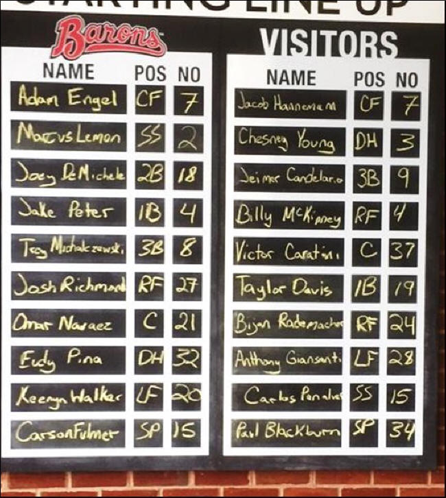 As for the game itself, the contest was won by the Tennessee Smokies by the score of 7-3 over the hometown Barons, and the Barons scored all 3 of their runs in the bottom of the 9th, so it was not a particularly competitive game. The winning pitcher for the Smokies was Paul Blackburn, while Barons pitcher Carson Fulmer—a 22-year-old former first round draft pick (8th overall) from Lakeland, Florida—took the loss. The game’s only home run was hit by Smokies slugger Bijan Rademacher (no clue as to his nationality or family heritage) in the top of the 4th, a 3-run jack.