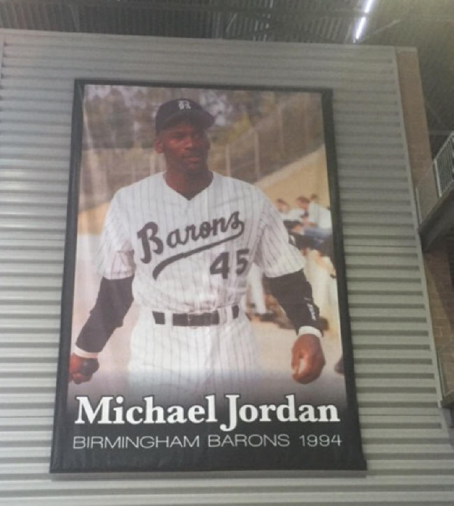 The new ballpark has absolutely revitalized baseball as a spectator sport in Birmingham, as the Barons have drawn more fans to Regions Field the past two seasons than in any other season in their history, save one. You may already know the reason, but if not, take a look at this giant poster of a former Barons player who brought the masses to the ballpark in 1994 as never before or since:
