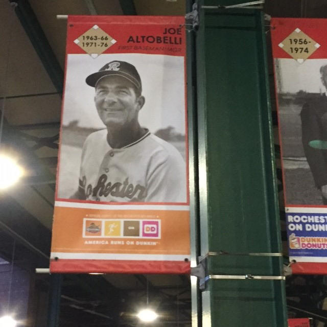Until visiting Frontier Field, I had no idea of the depth of richness of the Red Wing organization. In this the 2017 campaign, the Red Wings are celebrating their 60th anniversary of Rochester Community baseball. The Red Wings are currently affiliated with the Minnesota Twins, but from 1961-2002 they were the showpiece of the Baltimore Orioles organization, and there are a host of former O’s greats enshrined in the Red Wing Hall of Fame, including Cal Ripken, Jr., Boog Powell, Eddie Murray, Joe Altabelli, Don Baylor, Steve Bilko, Mike Boddicker, Al Bumbry, Rip Collins, Russ Derry, Luke Easter, Mike “Super Jew” Epstein, and most recently, Merv Rettenmund and Ron Shelton, both of whom were inducted into the HOF in 2016. For those of you who don’t recognize his name, Shelton is the former Minor League player (first with the Bluefield Orioles, then the Stockton Ports, then the Dallas-Ft. Worth Spurs, and finally with the Rochester Red Wings from 1967-1971) who gave up his dream of making it to the Majors and ended up becoming a screenwriter and then director. His directorial debut was perhaps the best baseball movie of all time, Bull Durham, which came out in 1988. Shelton’s screenplay for that movie earned him a nomination for an Academy Award. Costner’s character, minor league journeyman Crash Davis, is said to be a combination of former Red Wings catcher and manager Joe Altabelli, as well as Shelton himself.