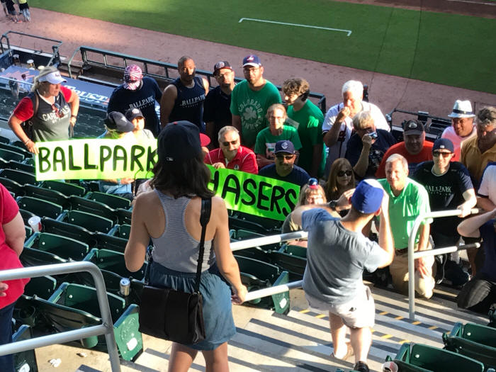 When we showed up at the ballpark and introduced ourselves to the head of the group, JSun’s worst fears were realized. This collection of misfits and ne’er-do-wells who had represented themselves as Ballpark Chasers weren’t really baseball fans, but were an underground cult consisting of a hodgepodge of Dungeons and Dragons gamers and Harry Potter disciples. Undeterred, (or perhaps quite pleased is more apt), He DLP agreed that we should join the group for the ballpark tour as well as their postgame activities. Can’t wait….Quidditch and Dungeoneering after the game. I thought I should make my best effort to fit in, but since I don’t have enough hair up top to do a Man Bun, I opted to do a “Back Bun” instead, since there is sufficient hair there to pull off that feat. This seemed to endear me to the Ballpark Chasers.