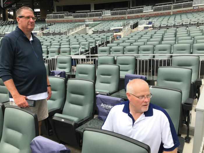 On Saturday morning, we awoke from our hangovers and made our way to the buffet breakfast at the hotel, giving us the opportunity to nosh on wet, mushy scrambled eggs, undercooked bacon, and burnt toast. Works for me. Stomachs filled and ready for the day, we headed to the stadium early for a private tour of the ballpark. Dave (He DLP) seemed especially agog, as from his perspective, the primary focus of the entire trip was to meet up with a group of individuals who bill themselves as Ballpark Chasers, who had arranged the tour. Since JSun doesn't like people, he had a strong degree of skepticism for this plan, which ultimately turned out to be well founded. Dave was somehow “catfished” into joining this group on line, insisting that the rest of our traveling party cough up 50 clams and engage with the group as well.