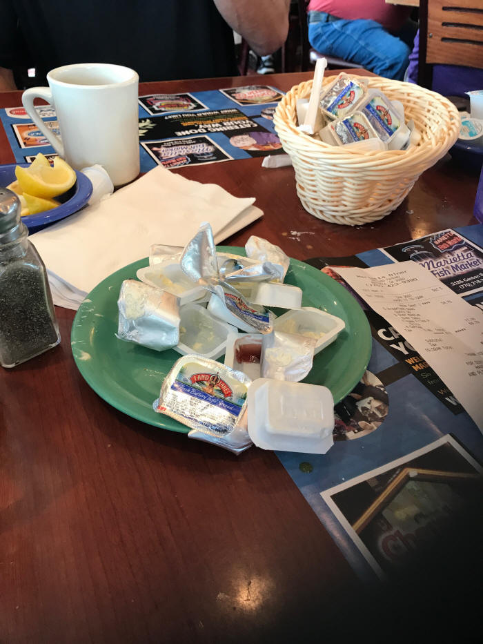 Given that Qton had only gained 15 pounds in the previous 36 hours, we hatched a plan to find a roadside diner where we could find a hearty breakfast that would rival the one eaten by Vincent Gambini and Miss Mona Lisa Vito at the southern diner in My Cousin Vinny. We succeeded. The Marietta Diner offered a diverse, old school menu of cholesterol rich artery cloggers, including grits with every meal. JSun demonstrated a remarkable affinity with butter, unaware of the ongoing cholesterol problem in the country (see the dead soldiers in the attached picture…they’re all his). It was a fabulous meal and a fine start to our final day in Atlanta.