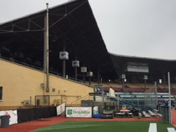 Nevertheless, in Canada, Stairs is recognized as one of their greatest baseball players of all time, and in fact, he currently holds the Major League record for most pinch-hit home runs with 23. In second place is Cliff Johnson with 20 pinch-hit home runs. Mr. Stairs is also well-known for being well-traveled, having played for 12 different Major League teams in his professional career, including the Montreal Expos, with whom he broke into the Majors in 1992, and the Toronto Blue Jays, where he hung his hat in 2007 and 2008. Here is the link to a fantastic article by Michael Clair entitled “The Hall of Fame Case: Matt Stairs.” Do yourself a favor and read it. Other members of the New Brunswick Hall of Fame include the following individuals, with a decidedly Franco influence: Waldo Henderson (1989) Clement Aloysius O'Conner ‘Oakie’ (1991) Eugene ‘Foggie’ Boudreau (1993) Rene LeBlanc (1993) Francois Joseph Dunn (1993) Father George Parent (1994) Arthur Edward ‘Bush’ Nickerson (1996) Wayne ‘Hike’ MacPherson (1997) Philip AJ Bourgeois (1998) Jean Guy Robichaud (1999) Clarence Girouard (2003) Jason Dickson (2016) [F4] After considering the New Brunswick baseball stars, Chumley decided to look to see if any players born on Prince Edward Island had made it to the Majors. He learned that there were three, if Wikipedia can be believed. The first was James Vernon Handrahan, who was born November 27, 1936, and died last November, who was a Canadian pitcher who played his entire career for the Kansas City Athletics. He played in a total of 34 games for the A’s in 1964 and 1966. The other two P.E.I. players were 19th century baseballers George Wood and Henry Oxley. FRENCH CONNECTION As Chumley’s Canadian adventure continued on to Quebec City [F5], Chumley was delighted to learn that the finals (their World Series) of the CanAm Baseball League were being held at that very time in Quebec City, at a stadium (Stade Canac) located less than a mile away from his hotel. Although the travel schedule did not allow Chumley to actually attend a game, he sauntered over for a look at this French ballpark built in 1938, and was pleased to find that the ballpark was open and available for viewing. While he was there, a couple of youth teams were on the field going through a practice, and it was fascinating to watch and listen to a bunch of French-speaking youngsters toss around the horsehide and practice this great American game.